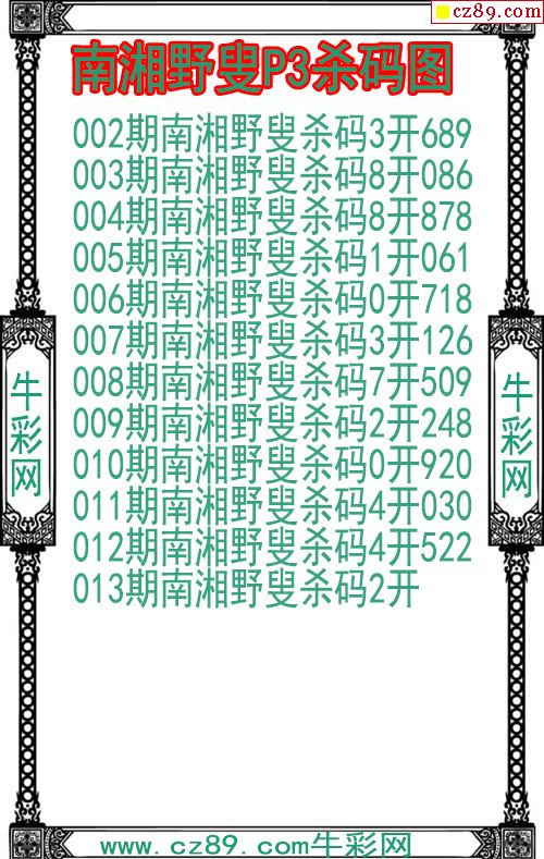 首页 > 排列3图谜 > 26年013期南湘野叟P3杀码图