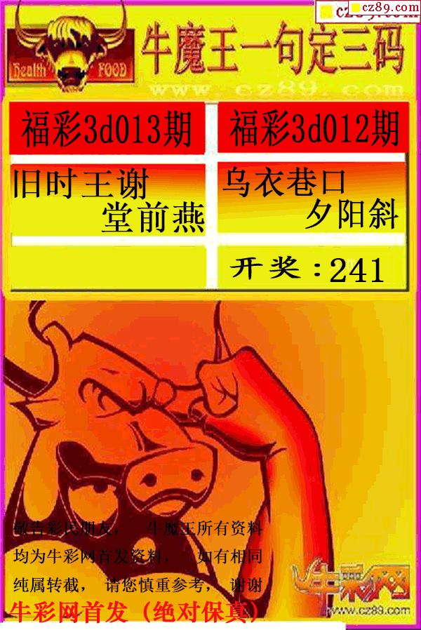 首页 > 3D字谜 > 26年013期牛mo王一句定三码(原创正版)